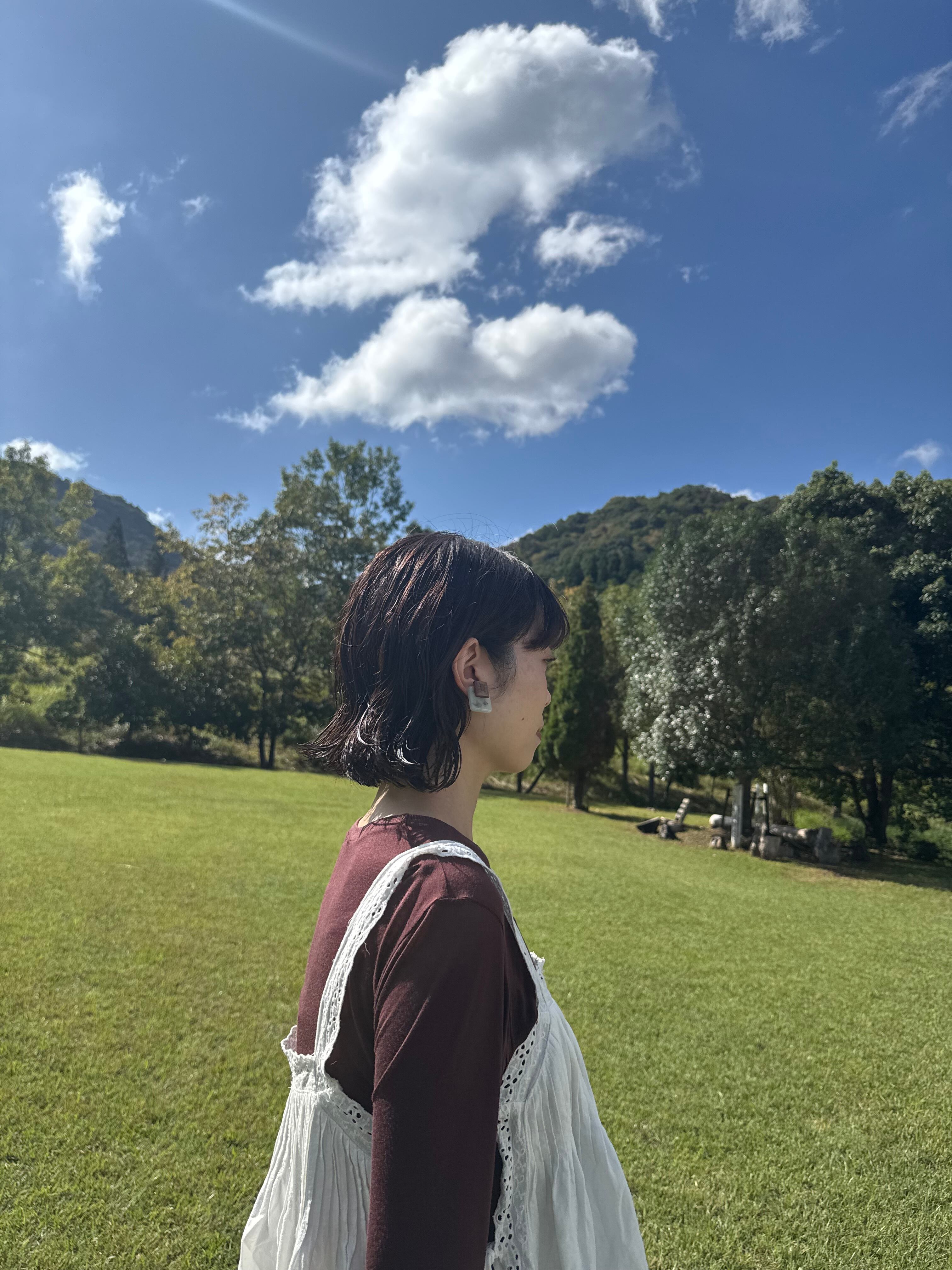 木材のパーツが耳元にナチュラルで洗練されたアクセントを添えます。