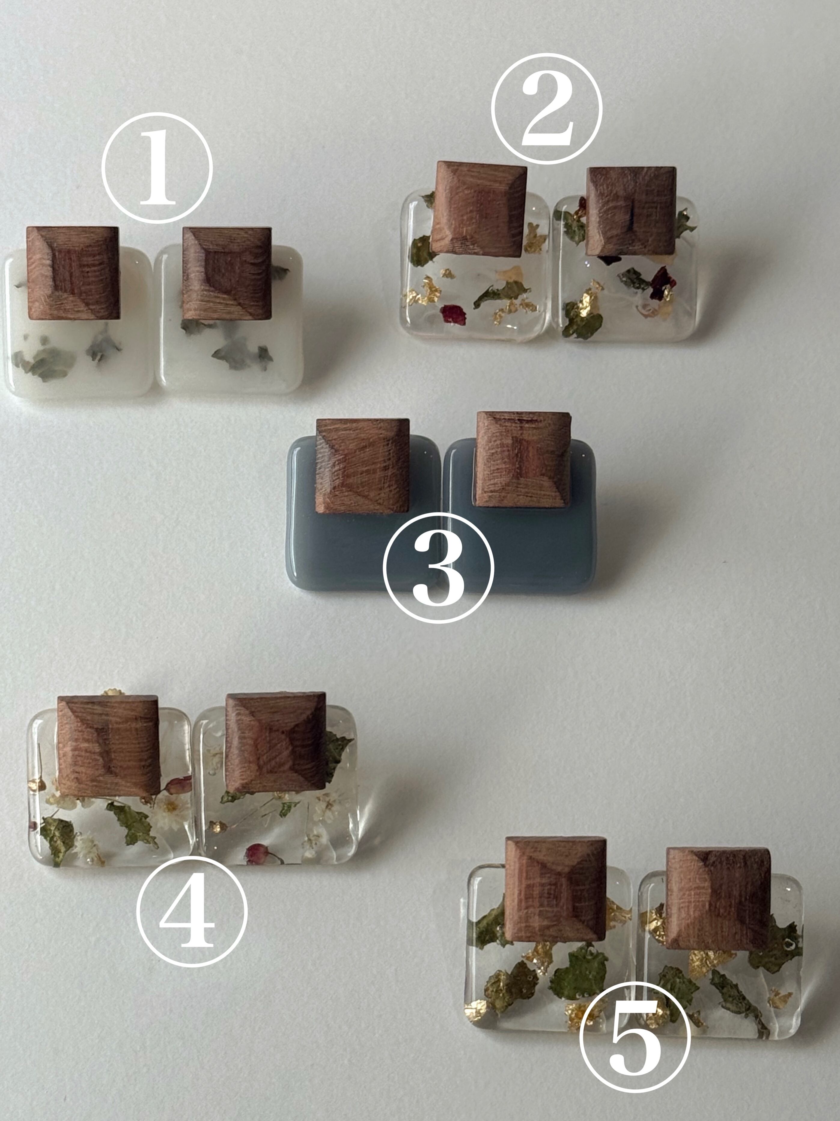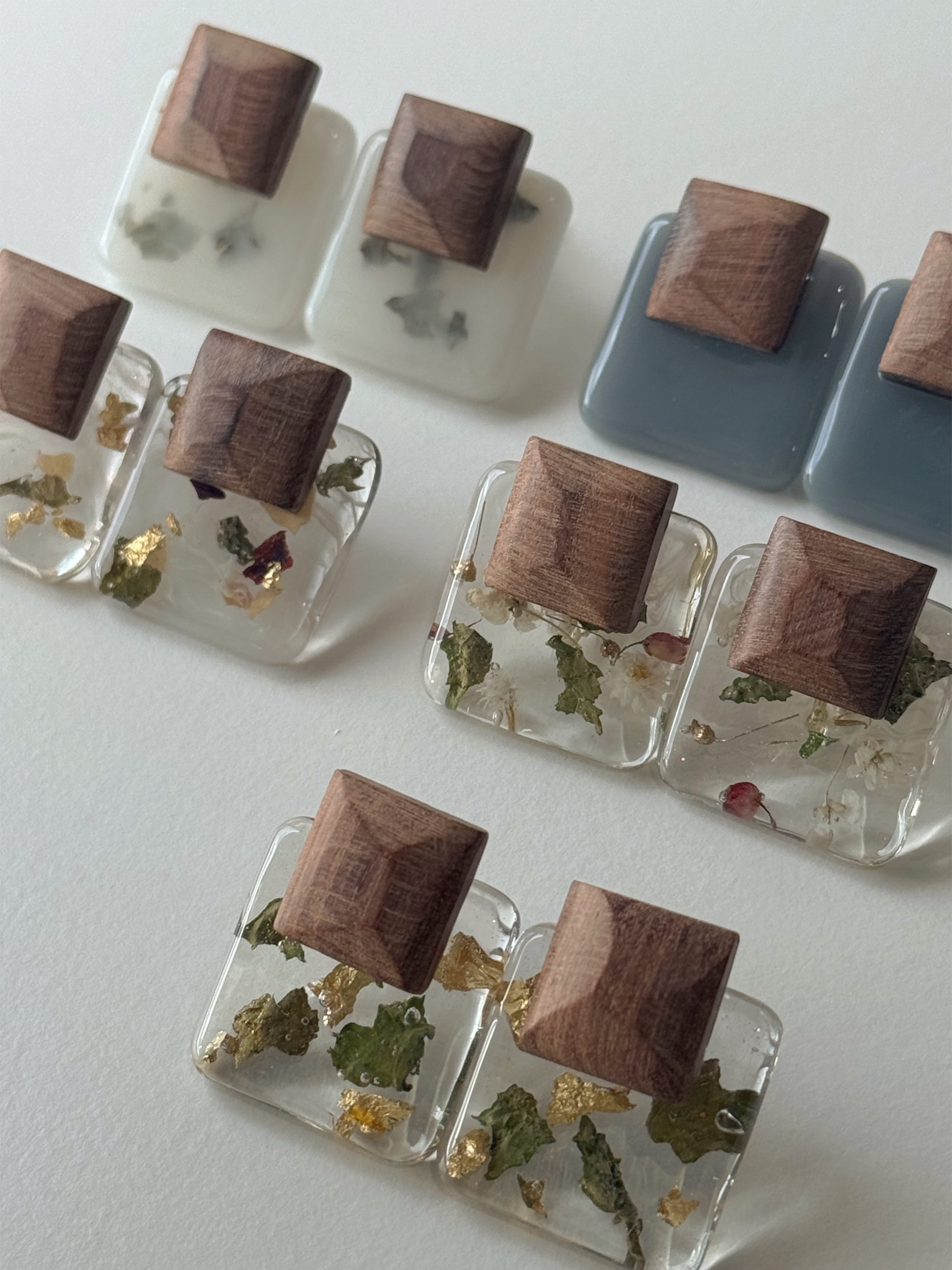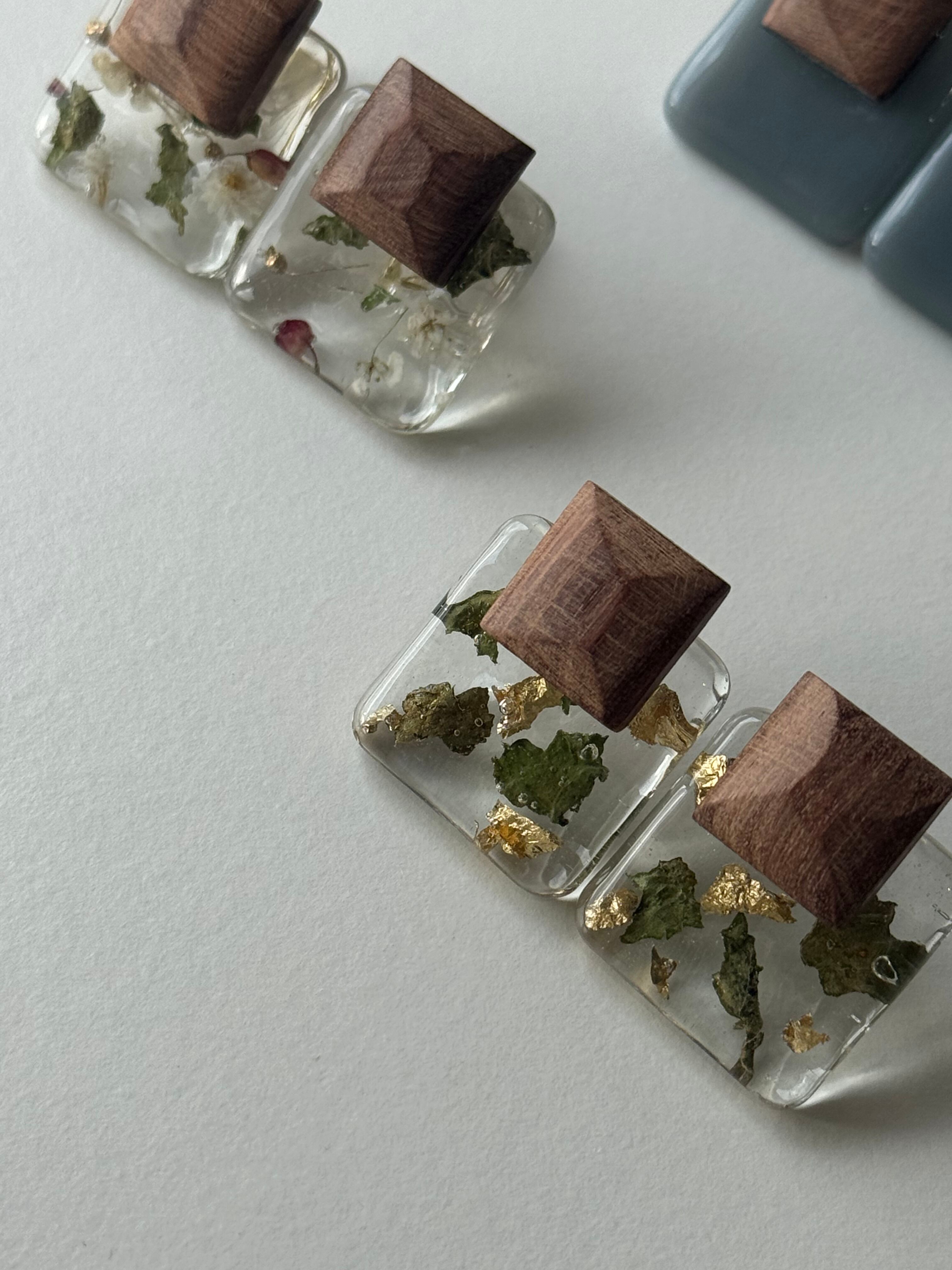 • 素材:天然木、レジン(樹脂)、ドライフラワー、金箔など