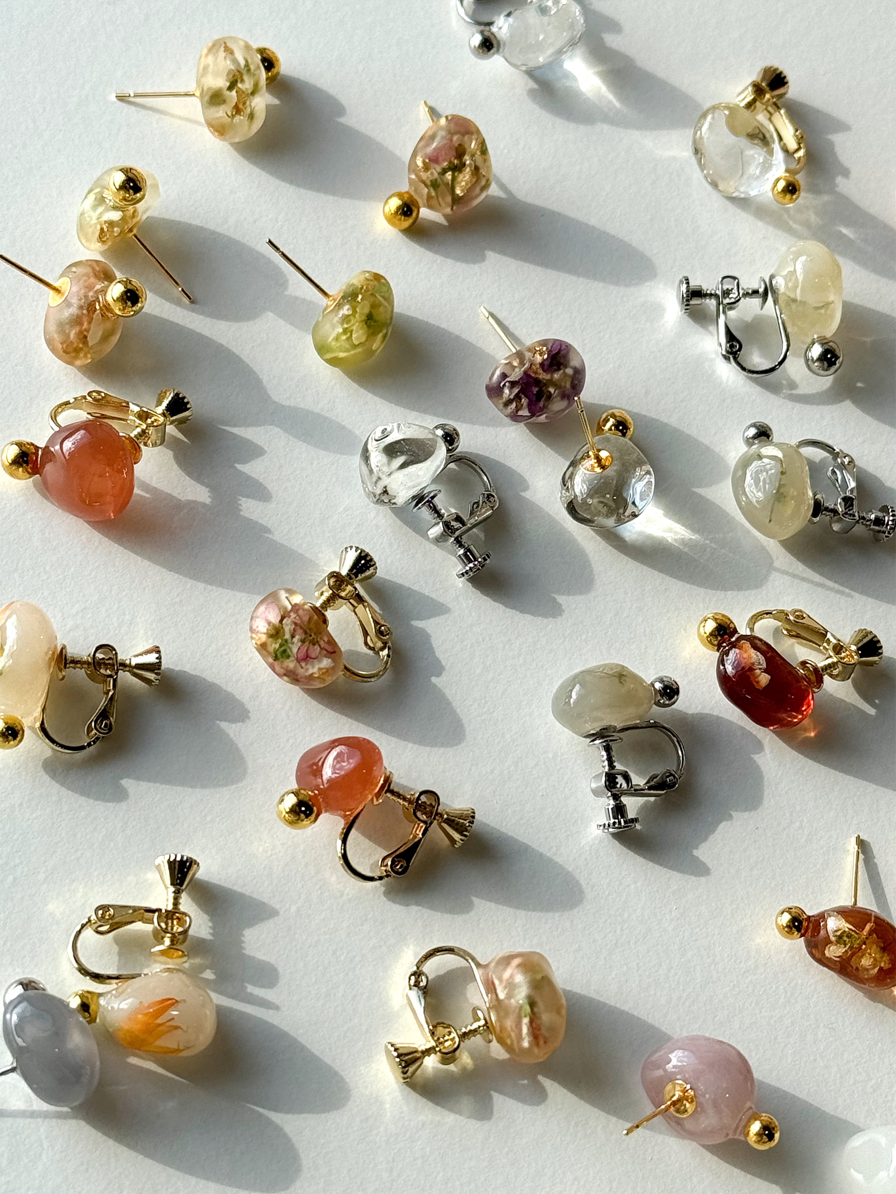 最大の特徴は、同じ色味が二度と作れないこと。一つ一つ手作業でカラーを調合し、形を作り上げるため、あなたのために作られたアクセサリーは、まさに世界でたった一つの特別な存在となります。